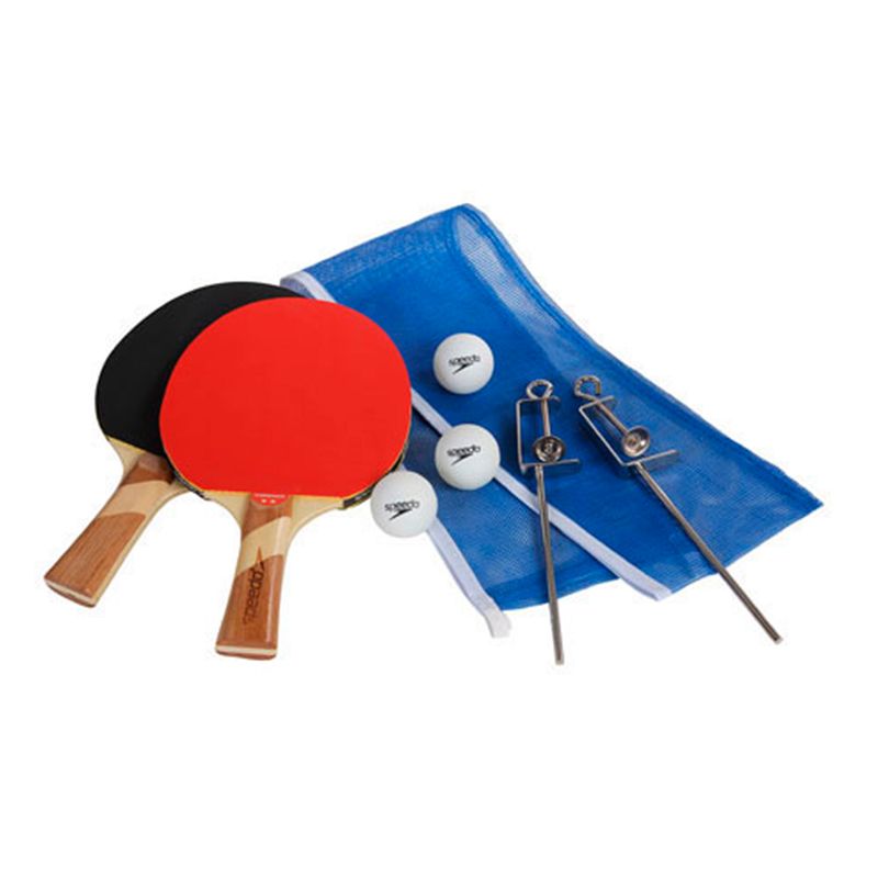 Vá além na prática do Tênis de Mesa com o KIT COMPLETO Speedo! . Composto por uma rede, dois suportes, duas raquetes e 3 bolinhas, é perfeito para jogadores regulares. As raquetes são produzidas em madeira e borracha sintética e possuem boa empunhadura, e as 3 bolas são em plástico de resistência, com 40mm. A rede em padrão oficial vem acompanhada de um par de suportes em metal, tudo em uma embalagem handbag, bem prático e fácil de transportar. Garanta já a sua diversão!
