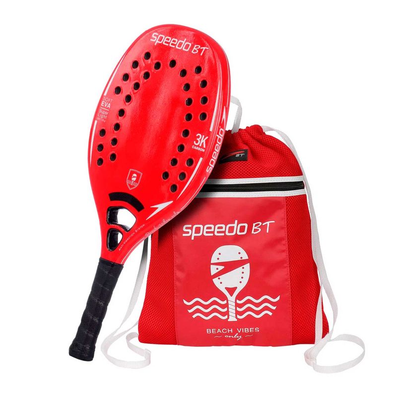 A SPEEDO Red vem acompanhada de uma exclusiva bolsa customizada, para que o atleta transporte com segurança e conforto até duas raquetes de Beach Tennis.