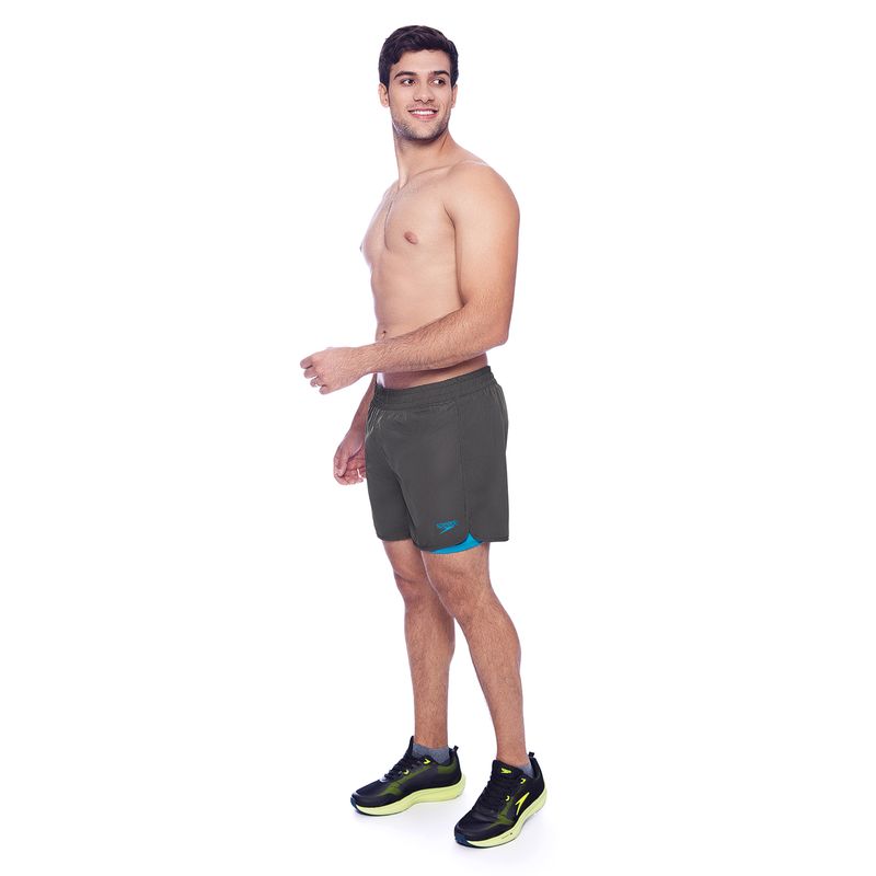 Possui uma bermuda interna fabricada com malha elástica.