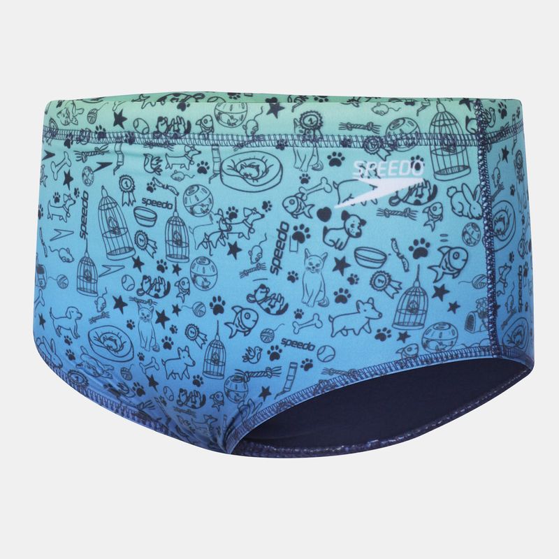 A Sunga Tradicional Degradê Pets Kids SPEEDO da Linha KidSplash vem com estampa degradê de tema pets. Conta com forro, cordão interno para ajuste e proteção UV.
