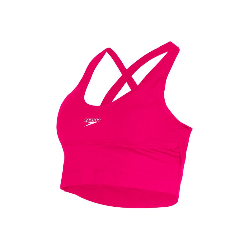 Esse top da Speedo ainda conta com design moderno, alças largas cruzadas, bojo removível e elástico de 8cm na barra para maior sustentação durante as atividades físicas.